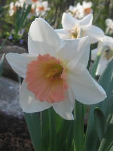 Pink Charm is a fantastic early blooming large-cupped white petaled daffodil that has the loveliest pink salmon inner cup that presents a unique color in the narcissus world. Florists go crazy for them!