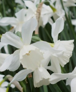 For years I had a mysterious single bunch of nameless, small-cupped, pure-white narcissus with curious petals growing near the house. I was thrilled to unearth their name, Narcissus ‘Thalia’. I am now forever in love. A larger multi-flowered daffodil, the outer petals are unique with their elongated shape, pure white color, and power-packed fragrance. Finding a good pure white narcissus is a challenge but Thalia is a unique variety that will return year after year and multiply fantastically!