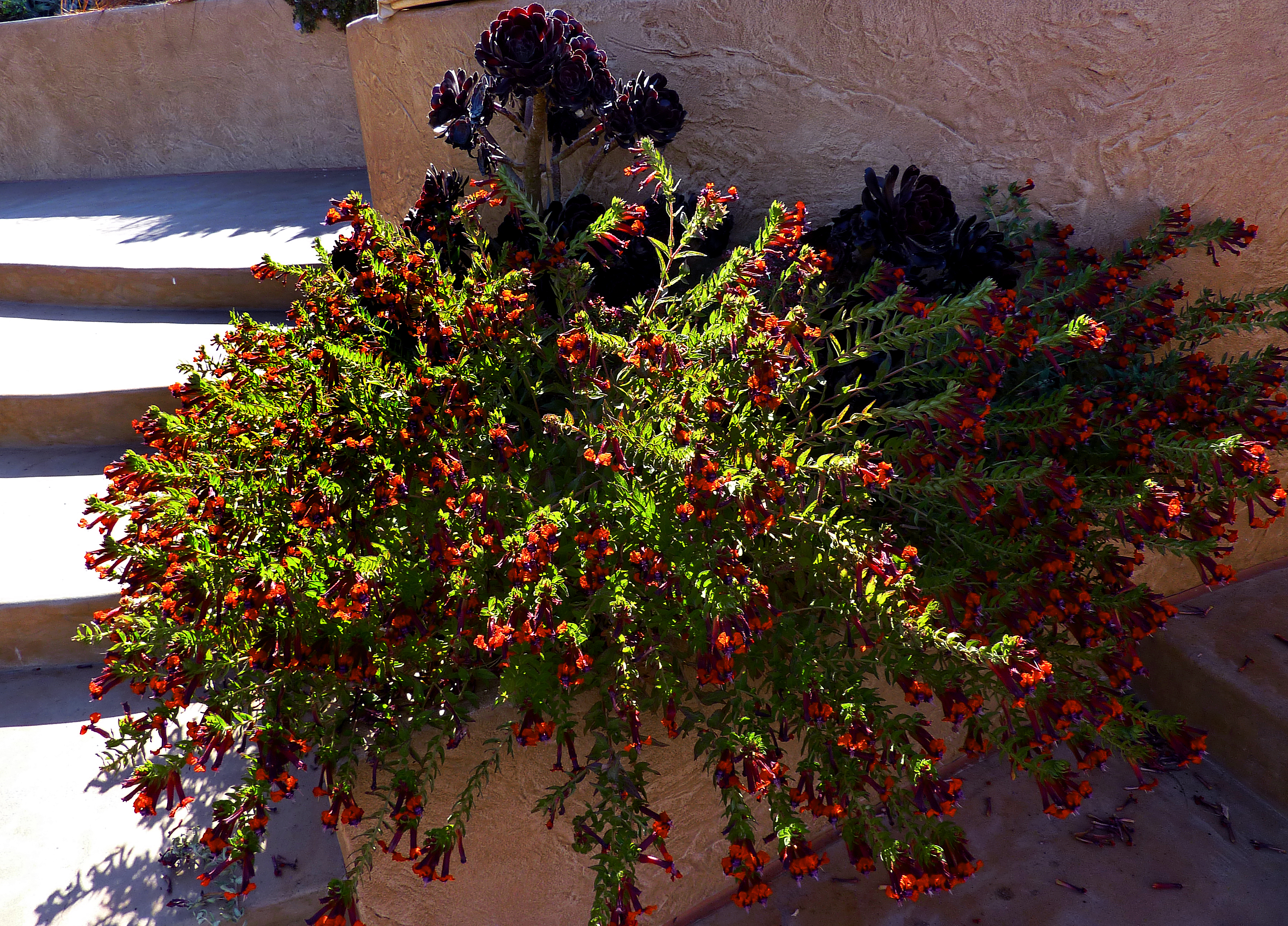 Geranium appears like a soft cloud with perfect small orange cups that look like painted eyes peeping out over the garden. It is like an artist’s rendition of what small daffodils should look like if they wanted a cool contrast between white and lovely orange.